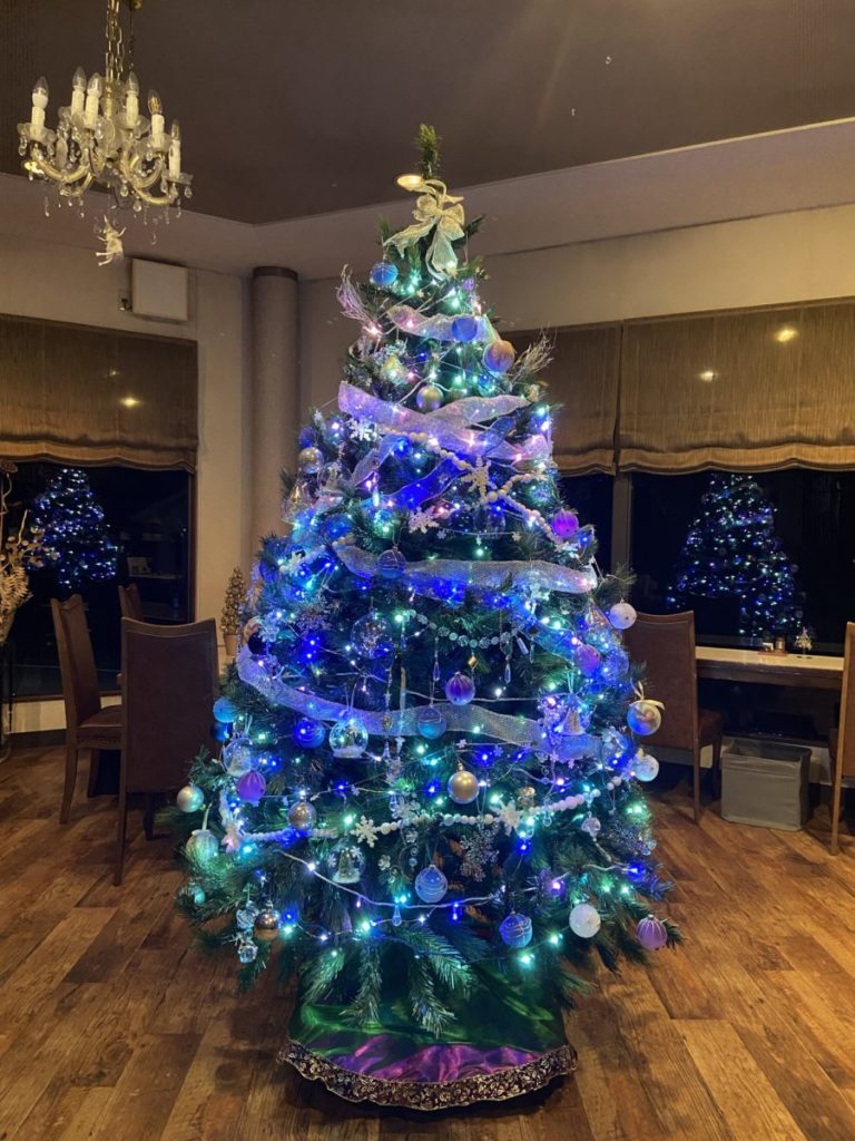 レストランには大きなクリスマスツリーをあしらっています。
