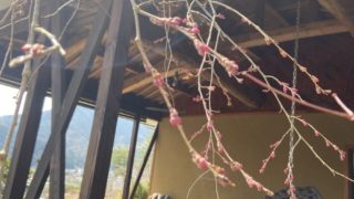 2026年3月28日(土)ランチタイムは12時開店となります。3月29日(日)ランチタイムは11時開店、13時30分ラストオーダーとなります。(ランチタイム空席残りわずかです。)テラス席の枝垂れ桜につぼみがつき始めました↓